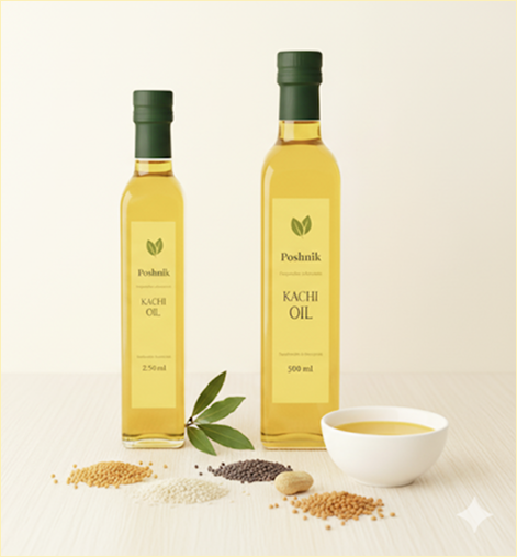 Poshnik oils are sourced from native regions renowned for their high-quality produce and processed using time-honored, traditional methods. This natural approach preserves the oils’ original flavor, aroma, and essential nutrients, giving you a product that reflects the richness of its origin.